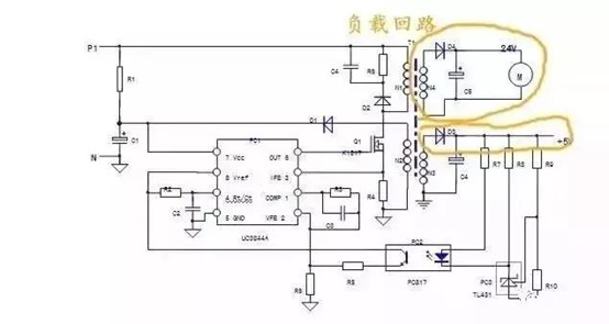 4、負載回路:N3,N4二次繞組及后續(xù)電路,均為負載回路,負載回路的異常,會牽涉到保護回路和穩(wěn)壓回路,使兩個回路做出相應的保護和調(diào)整動作。