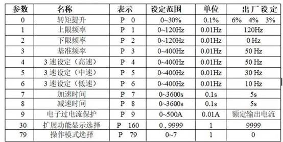 4、基本功能參數一覽表注意:只有當Pr.160“擴展功能顯示選擇”的設定值設定為“0”時,變頻器的擴展功能參數才有效。