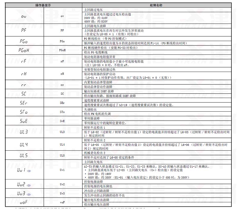 六、ov,PF,PGo,PGoH,rF,rH,rr,SC,SEr,STo,SvE,UL3,UL4,UL5,Uv1,Uv2,Uv3,voF故障代碼